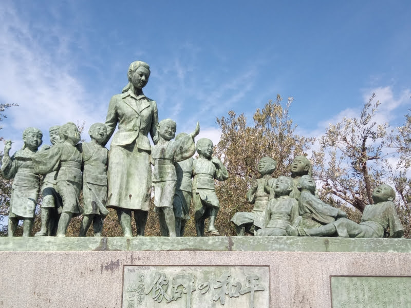 小豆島に着いて、まず目に入ったのが、12人の子供たちと大石先生が幸せそうに戯れている銅像でした。子供が12人もいるので、結構大きくて物理的に迫ってくるものがありました。小豆島に行って、「二十四の瞳」の思い出はそれだけです。あとは、オリーブ作りが盛んな場所を見て回りました。後から知ったのですが、太秦映画村みたいな「二十四の瞳」のロケ地、「二十四の瞳映画村」と「壷井栄文学館」があるそうですが、私は何も調べずに小豆島に行ってしまったので、それらを全く見ていませんが、小豆島の観光名所になっているそうです。