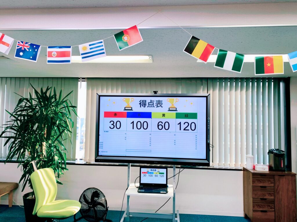 クルーの皆さんは4チームに組み分けされて、各競技で得点を競います。私は黄色チームでした。