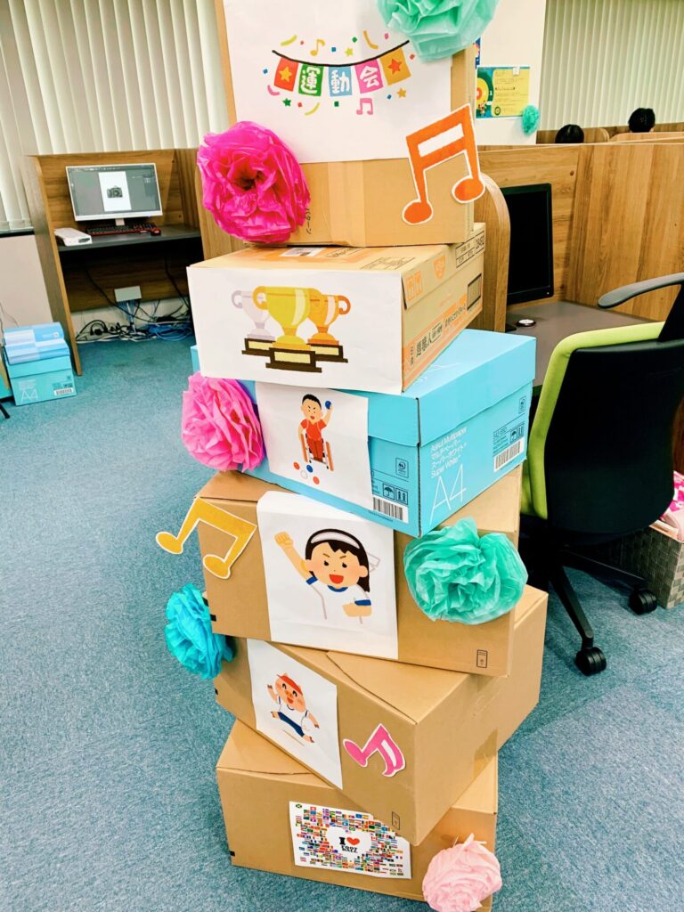 事業所内は手の込んだ飾り付けがされており、BGMには小学校の運動会でよく聴いた曲が流れて雰囲気を盛り上げます。