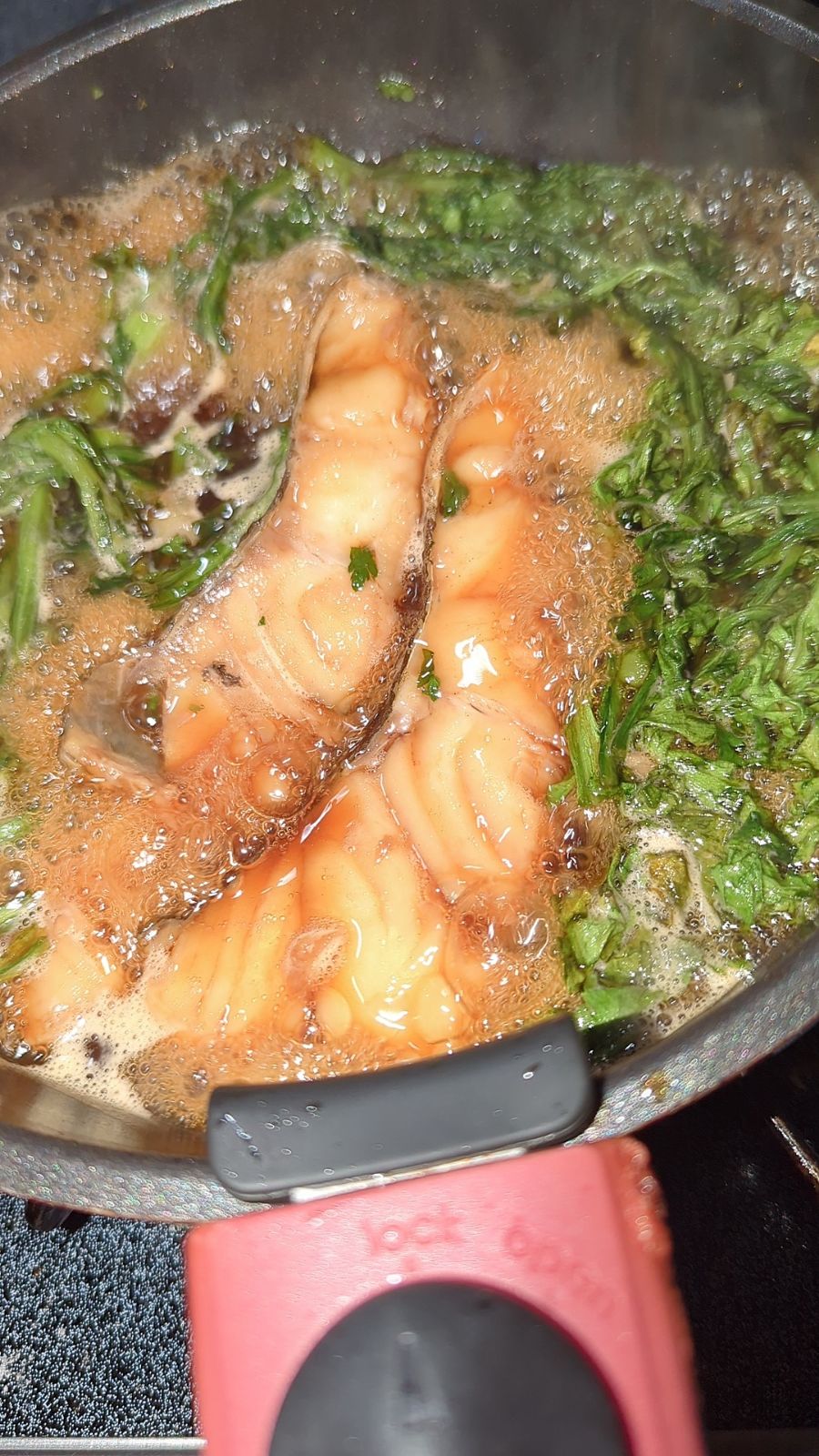 ・鍋に★を入れて煮立て、たらを加えて煮汁をかけながら中火で煮ます🔥🔥🔥