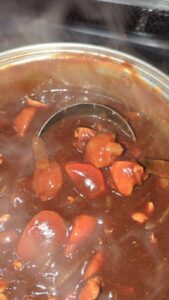 ・火が通ったら水を入れ、アクを取りながらおよそ20分ほど煮ます🔥🔥🔥