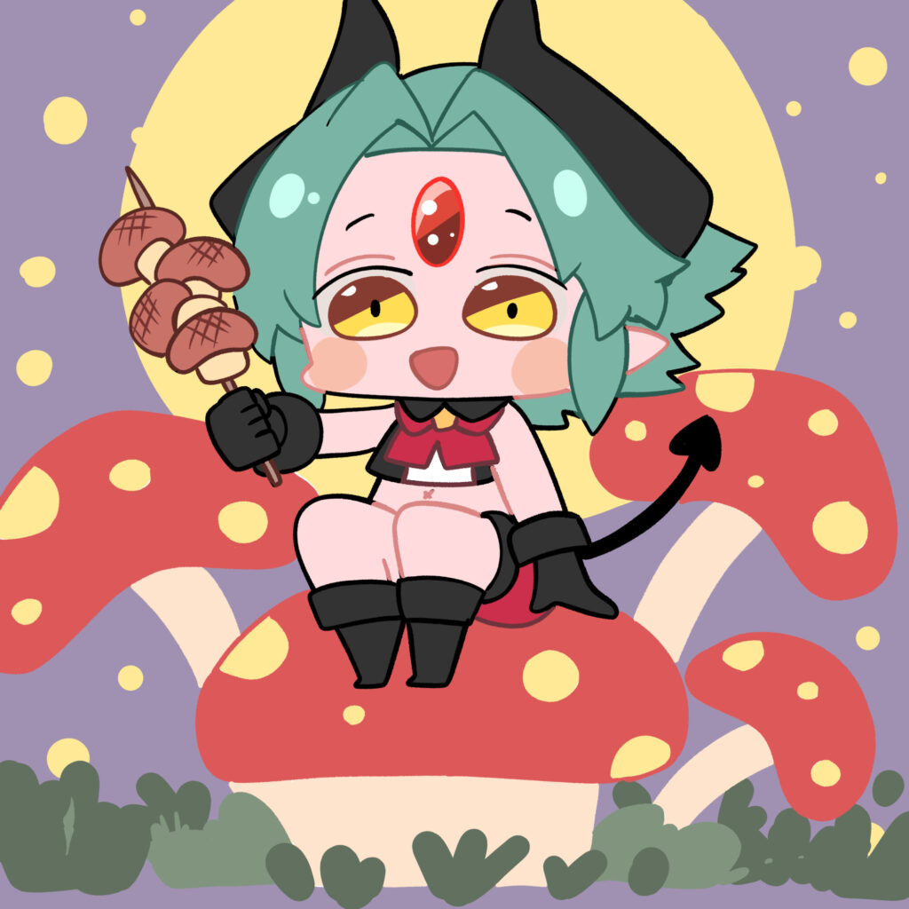 キノコの串焼きを魔界のキノコ森で食べる魔王子くんの巻
