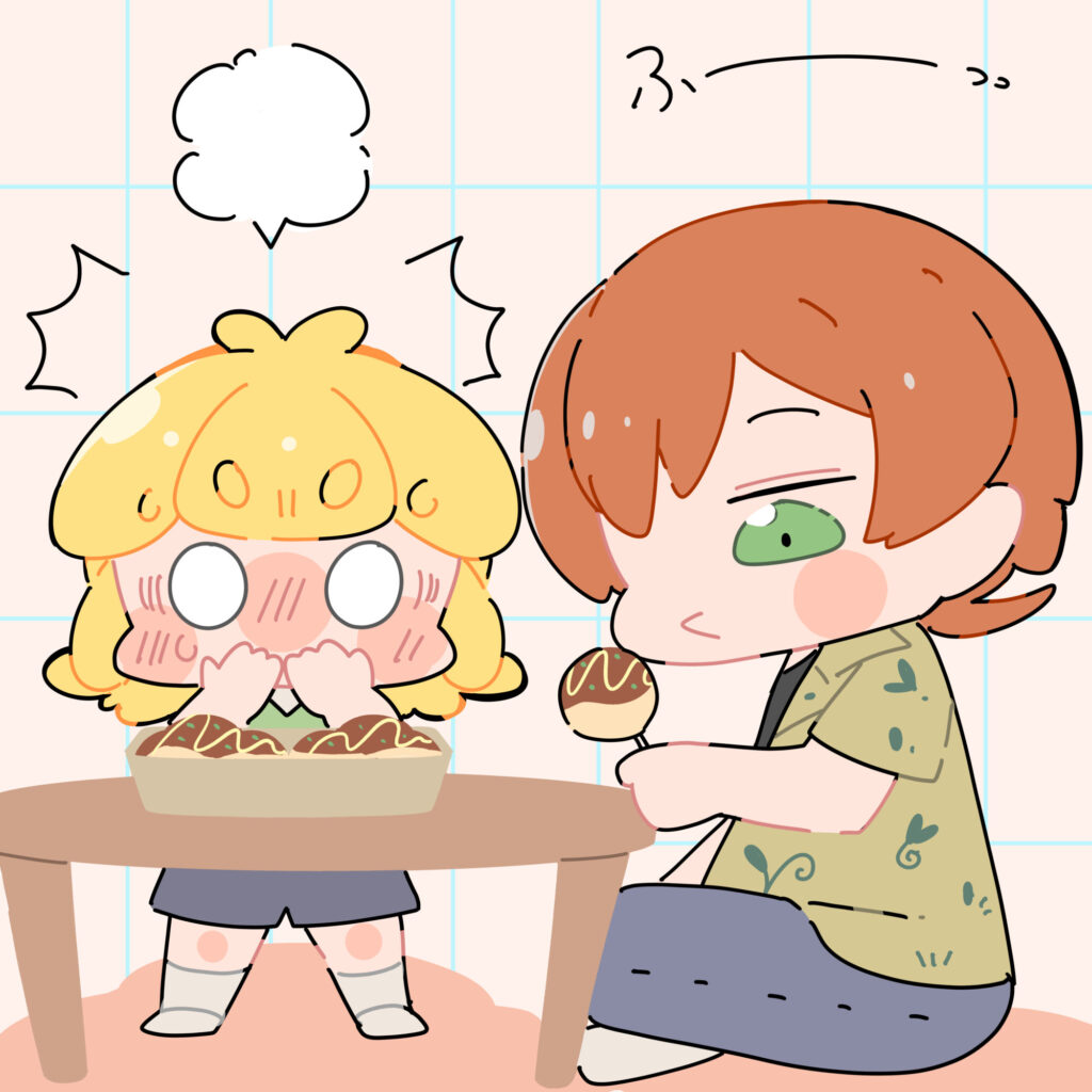 おいしいたこやき…しゅん、ってなったらお父さんがさましたたこ焼きをくれたんだ。