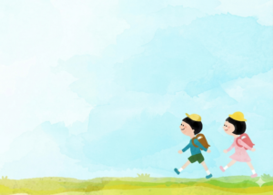 3月の暖かい日に車を運転していると、黄色い帽子を被った1年生が