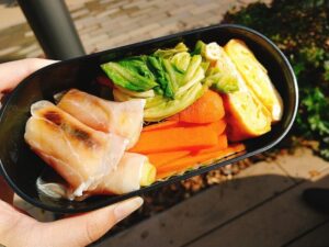 ヨガの友達は卵焼きにカニカマと細く切ったハムが入っていて、美味しかった