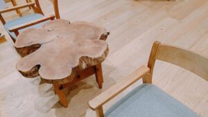 だからテーブルも椅子もその木でできたもので、デザインもその木の模様や形を活かしているし、触り心地も気持ちいい