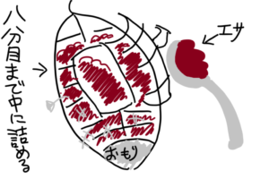 そこにアジとか(共食い…)魚をミンチにしたものを八分目くらいまで入れます