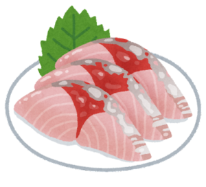 上記のように大名おろししていき、皮をはいだり、骨を取ったりetc.…etc…していくとイラストのようにだいたい刺身ができていきます