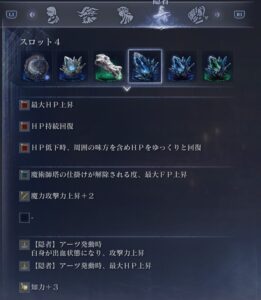 ”魔力攻撃+4”は他にいいのがなくとりあえず火力上げておくかと思いつけています