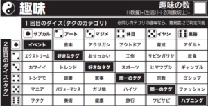 次回以降に解説する亜侠の能力値から計算される数の趣味を”趣味決定表”からRoCで取得できます。決定した趣味は情報収集やおたからを使用するときに関係します。おたからについても次回以降に解説します。