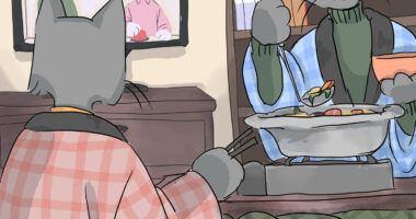 今回はこたつで鍋を食べる猫たちのイラスト描きました。 背景はフリーハンドで直線ツールなどを使わずに描いて...
