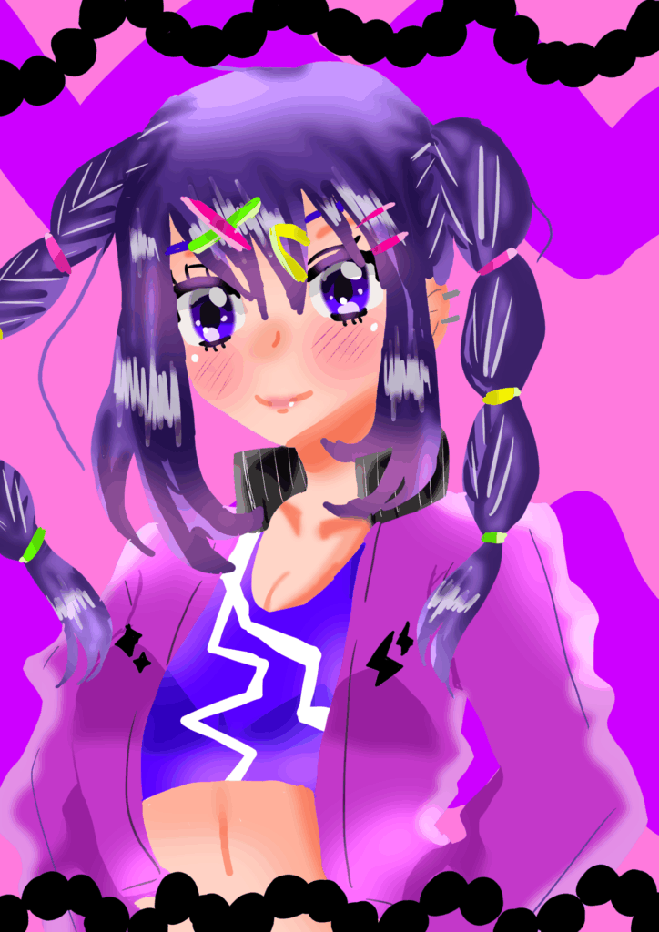 三つ編みツインと服装がカッコいい女の子を線画なしで描いてみました。線画なしのイラストもいいですね!
