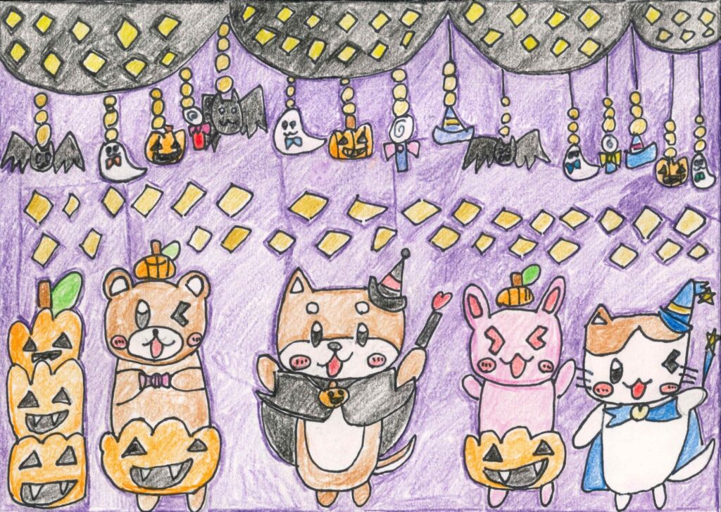今回は、ハロウィンパーティーをしている動物たちを描いてみました!