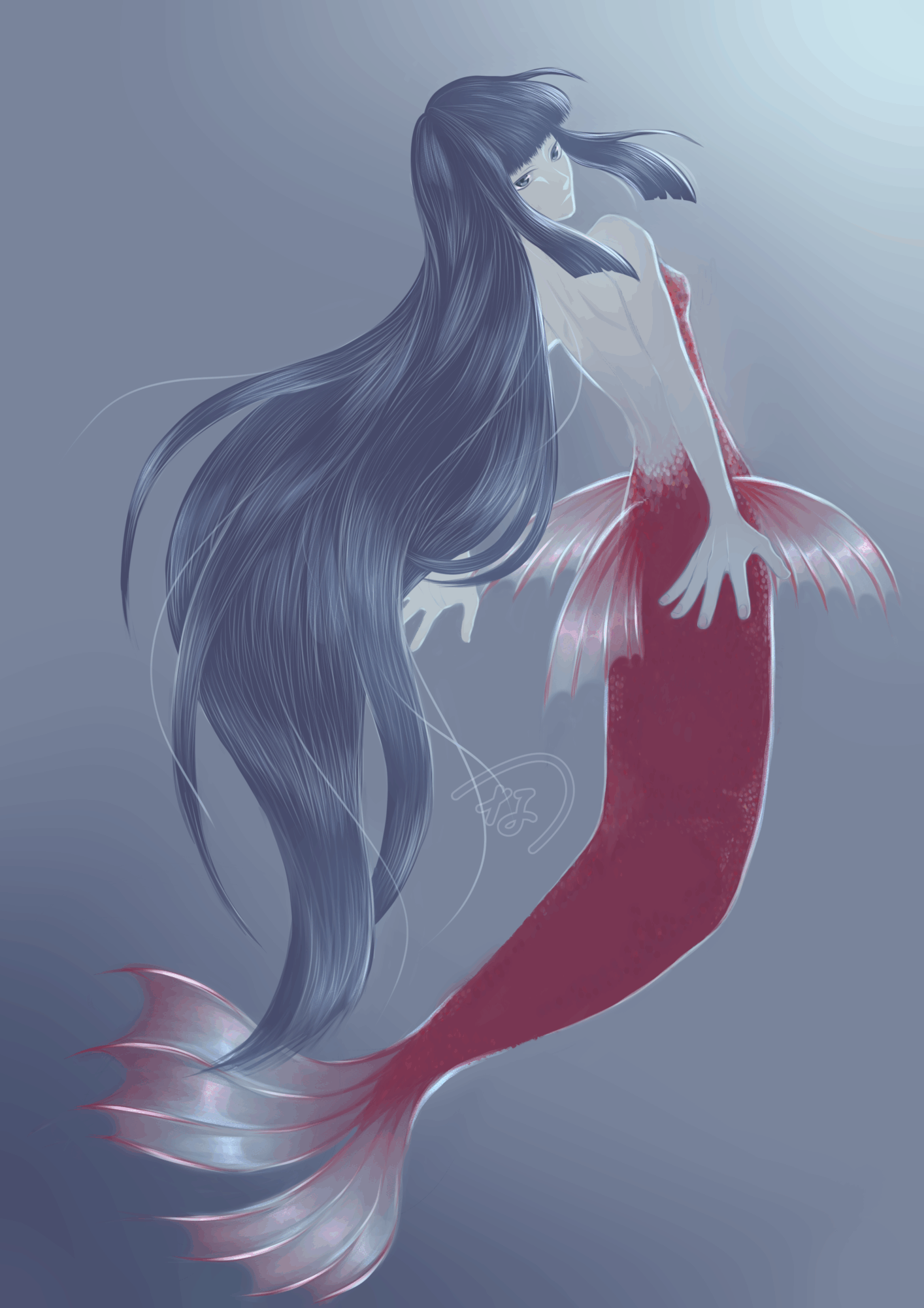 上半身(上半身?)の鱗は割と気に入っているのですが、下の魚部分はめちゃくちゃ描き込んだのに全然見えなくなって尚且つ鱗の主張も思った通りにいかず「ぐぬぬ…」となっております。