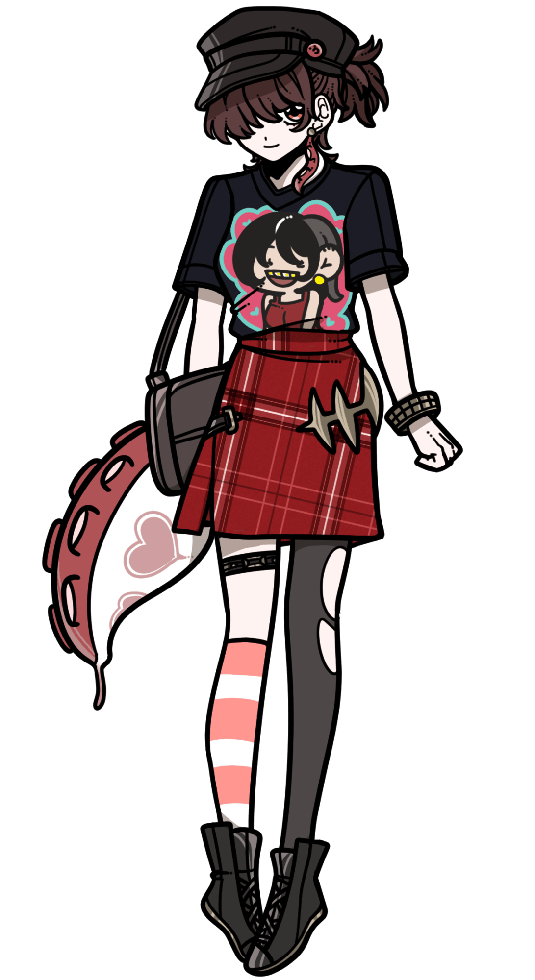 彼女はたこの種族の者で、背中からたこの触手が生えています。学生時代の時はおとなしい性格でしたが軽音部に所属していたそうで、学校の文化祭で色々な楽器を使って演奏していたら他のクラスメイト(男子)から人気が上がったそうです。(なんと彼女のロッカーには大量のラブレターが入っていたことも。)