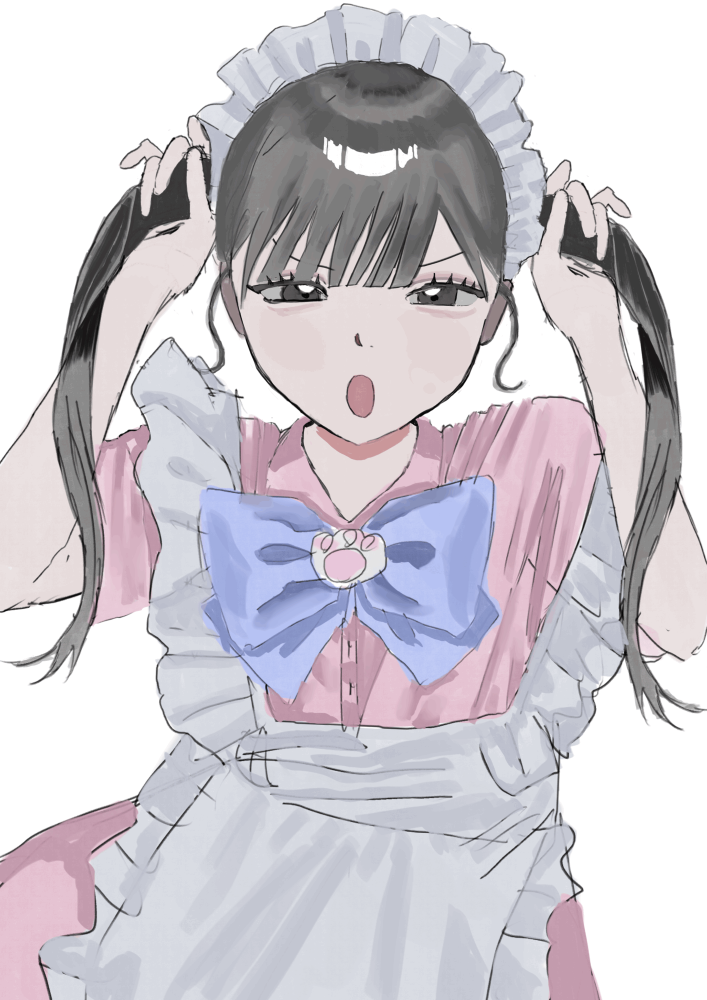 今回はツインテールのメイドさんを描きました!