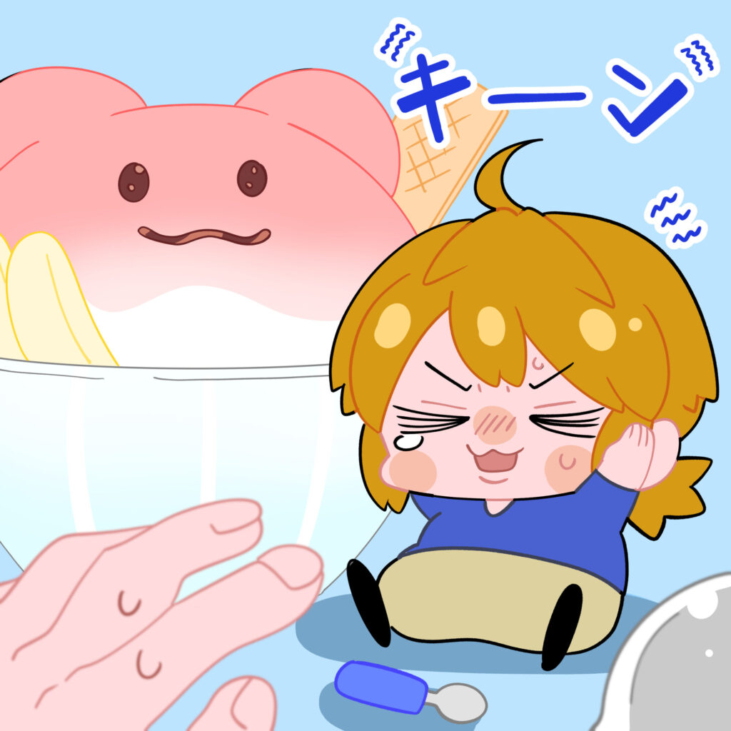 かき氷を食べてキーンってなるキナコくん。