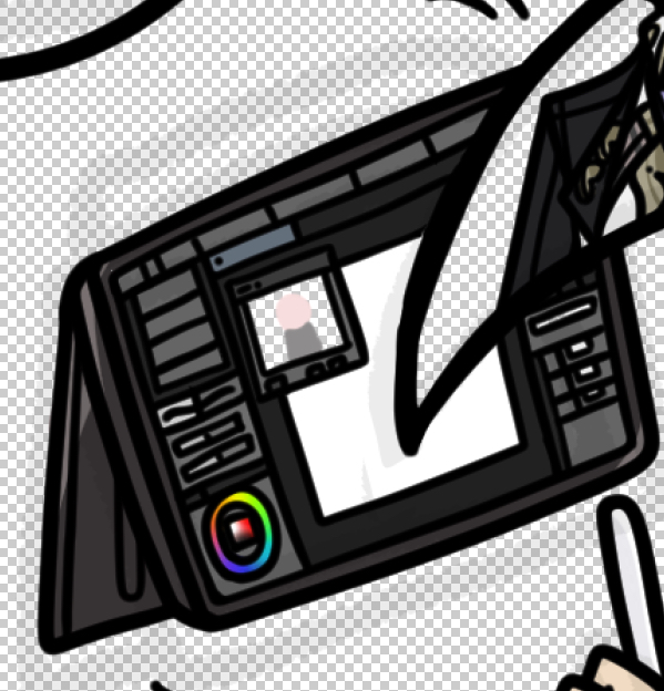 私(自画像)とiPadです!お絵かきしているところから飛び出す!という表現をしたかったので、、、笑
