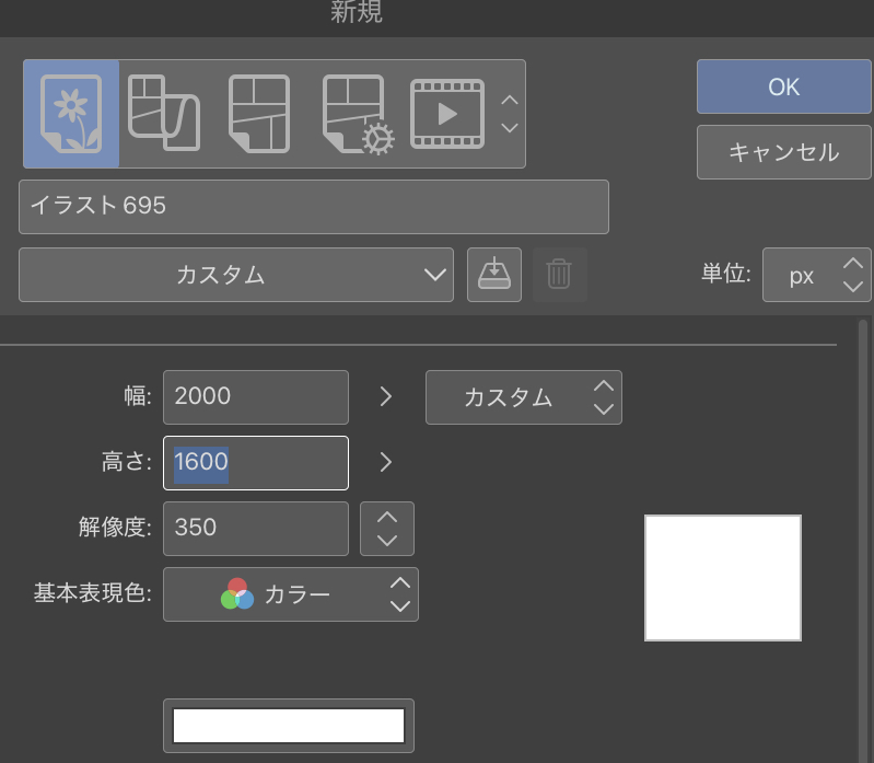 解像度も大きすぎると動作が重くなったりするので今回は350dpiです。