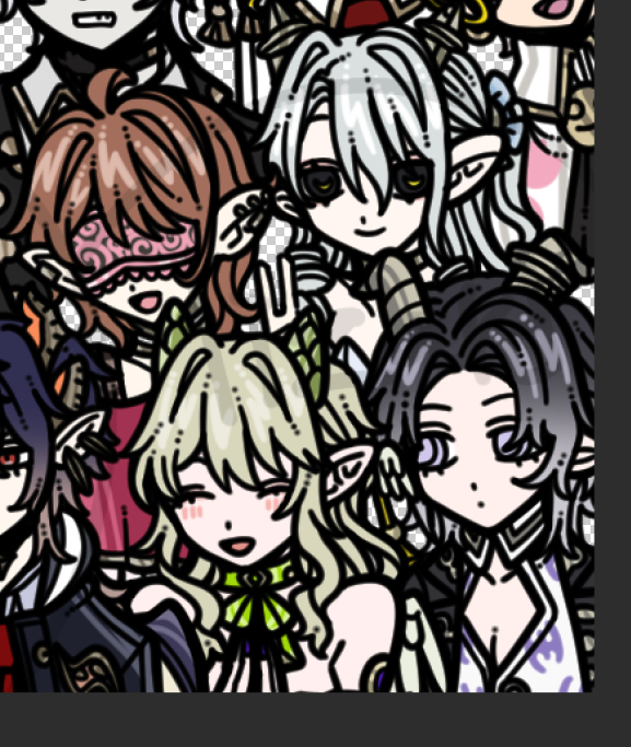 ⑤は塗り残しチェックの為に黒めの背景にしています。(肌色や白の塗り残し)