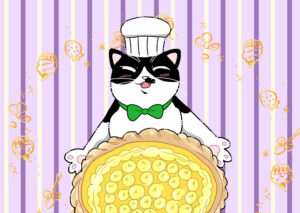 とっても美味しいタルトだったので、今回は食いしん坊のちーくんと一緒にイラストを描いてみました!(タルトの見た目はちょっと違うけど)