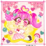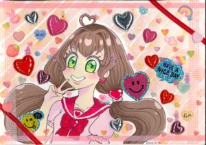 使用画材 アクリルガッシュ、不透明水彩、色鉛筆、コピックアクレア、装飾リボン、マスキングテープ、デコレーションシール、フレークシール 制作日 2025,10,20 Pink Sugar