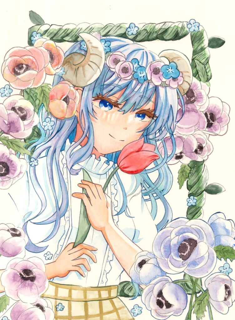 今回の作品は好きなネモフィラとアネモネを描きたい気持ちから
