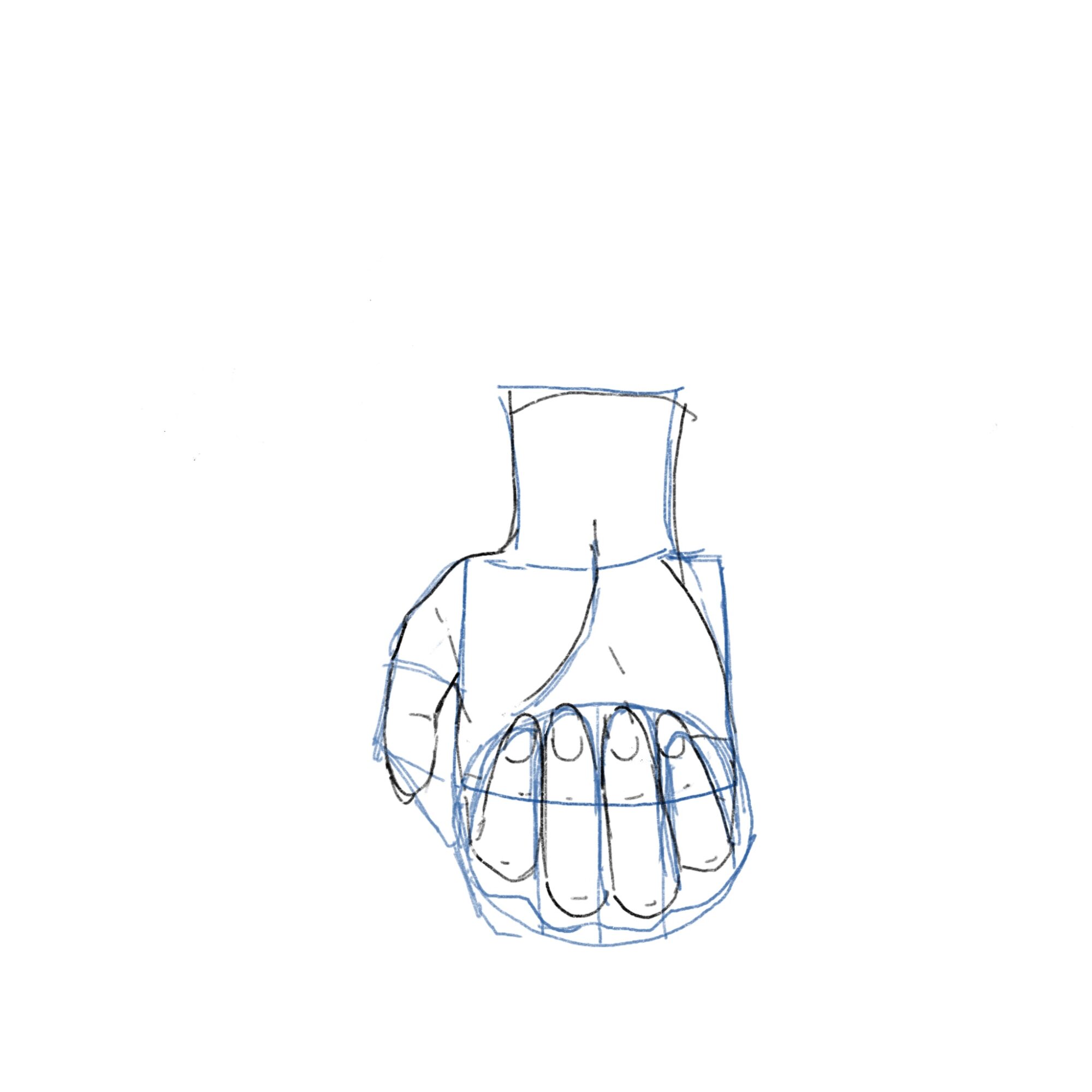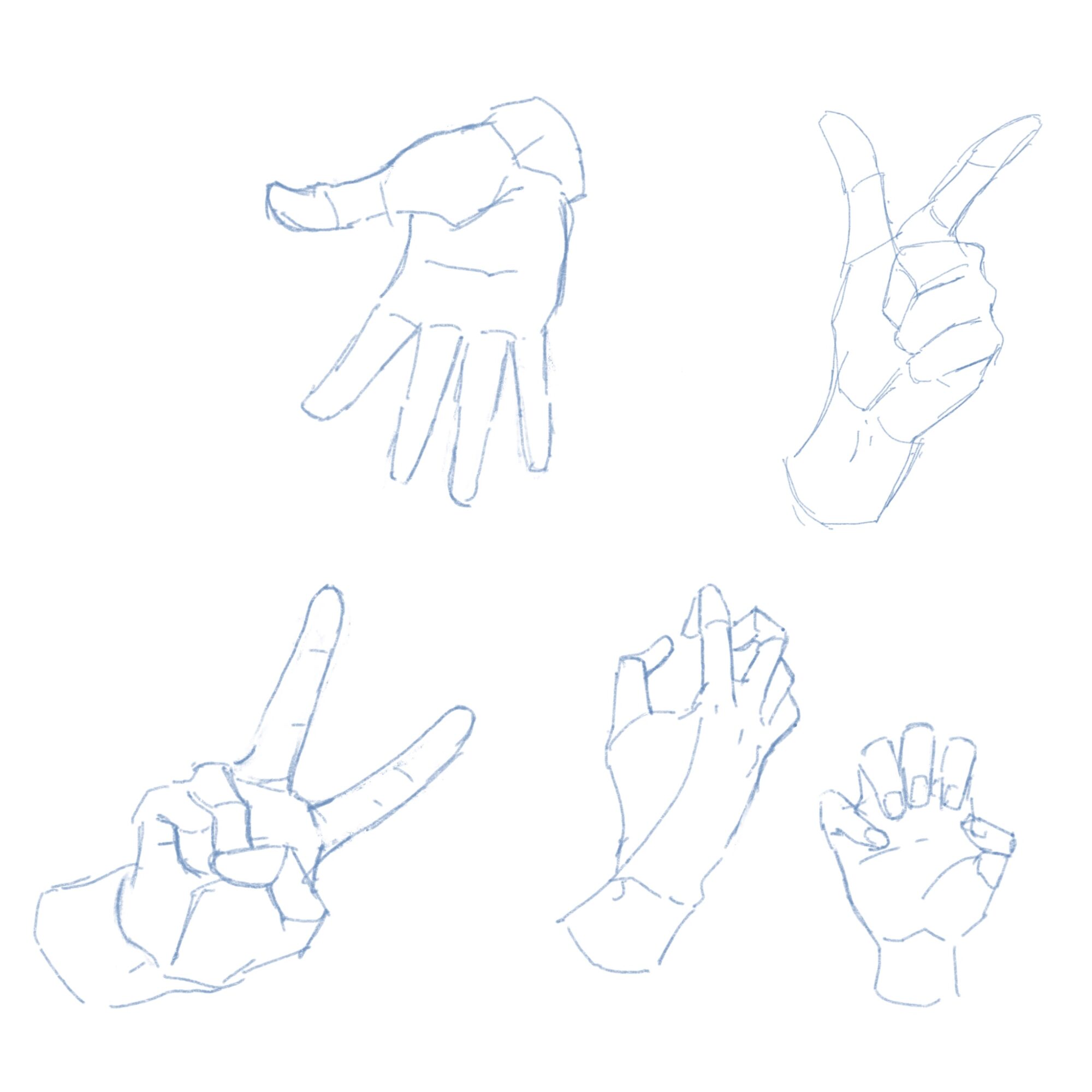 どの手も角度がかわるだけで四角と丸で下書きしてしまえば簡単に描けるようになります