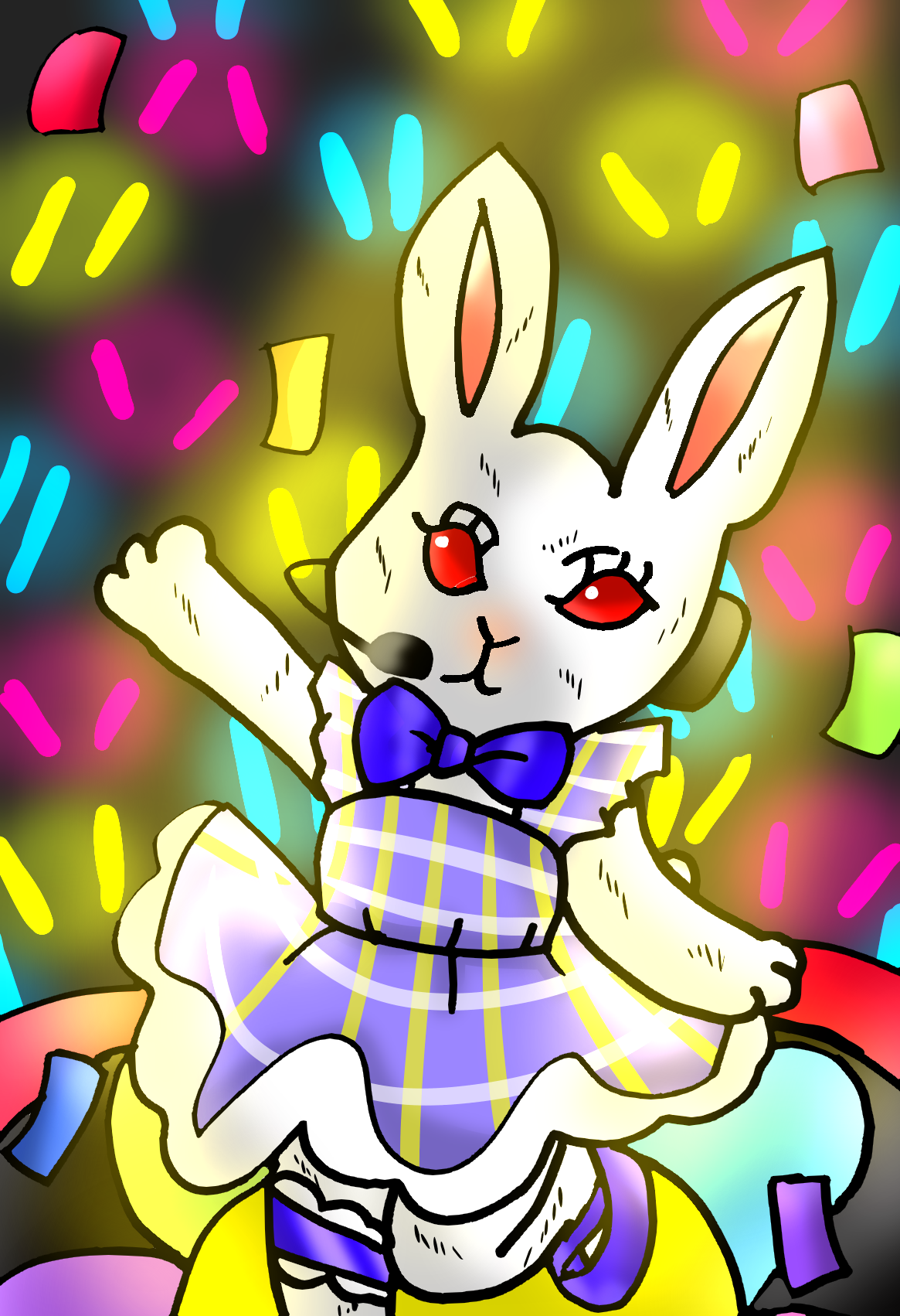 アイドルの兎の女の子がライブをしている様子を描いてみました。手を振ってファンにファンサを送っていますね。
