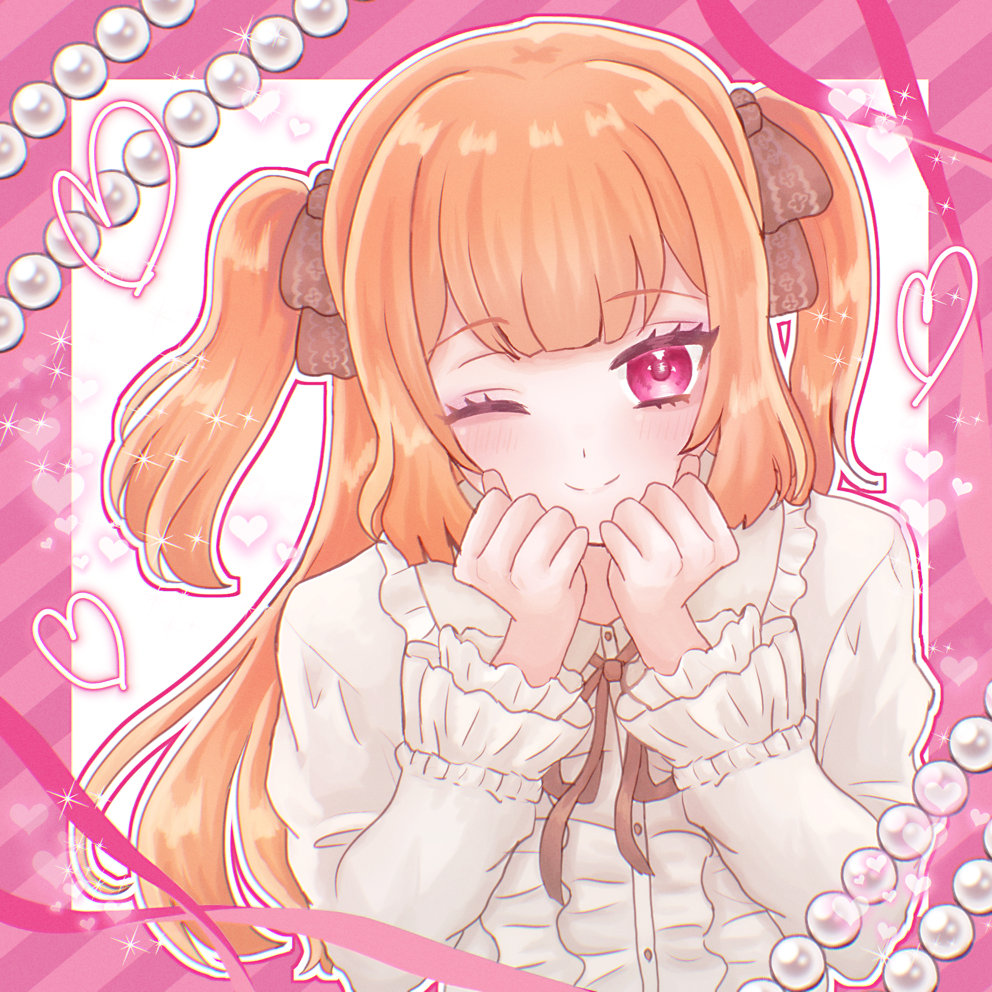 ハーフツインテールのオレンジの髪に、つり目&たれ眉がチャームポイントです!