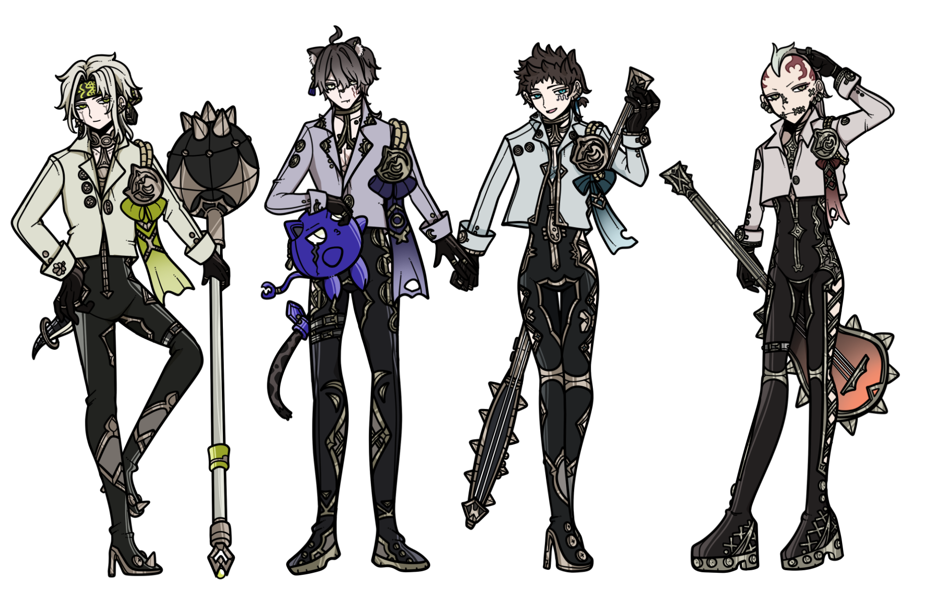 「音楽バンドグループ」なのに楽器すら持っていないデザインのキャラクターの立ち絵が多いのは何故?と思ってしまったので没案です。付け足すことも可能ですが取ってつけたような感じになってしまうのと、それ以前にこのキャラクターデザイン達が不満だったのでやめました。