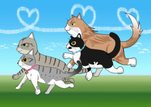 今回はその子たちの紹介と、その子たちと我が家のふたりのイラストを。