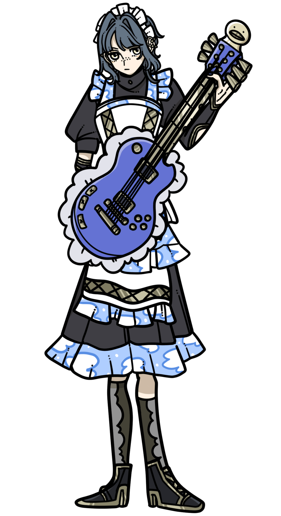 彼女はこのグループの「ギター」を担当しています。彼女はこのグループの中で「ツンデレキャラ」と言われています。彼女がまだ上京してばかりの頃は「メイド」として裕福な家庭で働いていたそうです。しかし、ご主人様の前でため息をついたり、当たりが強かったりしていたのですぐに辞めさせられたそうです。お金がない状況で目にしたものはSNSでの「バンドの結成」の募集でした。そこから彼女は清掃関連のバイトをしながら音楽関連の仕事を目指したそうです。