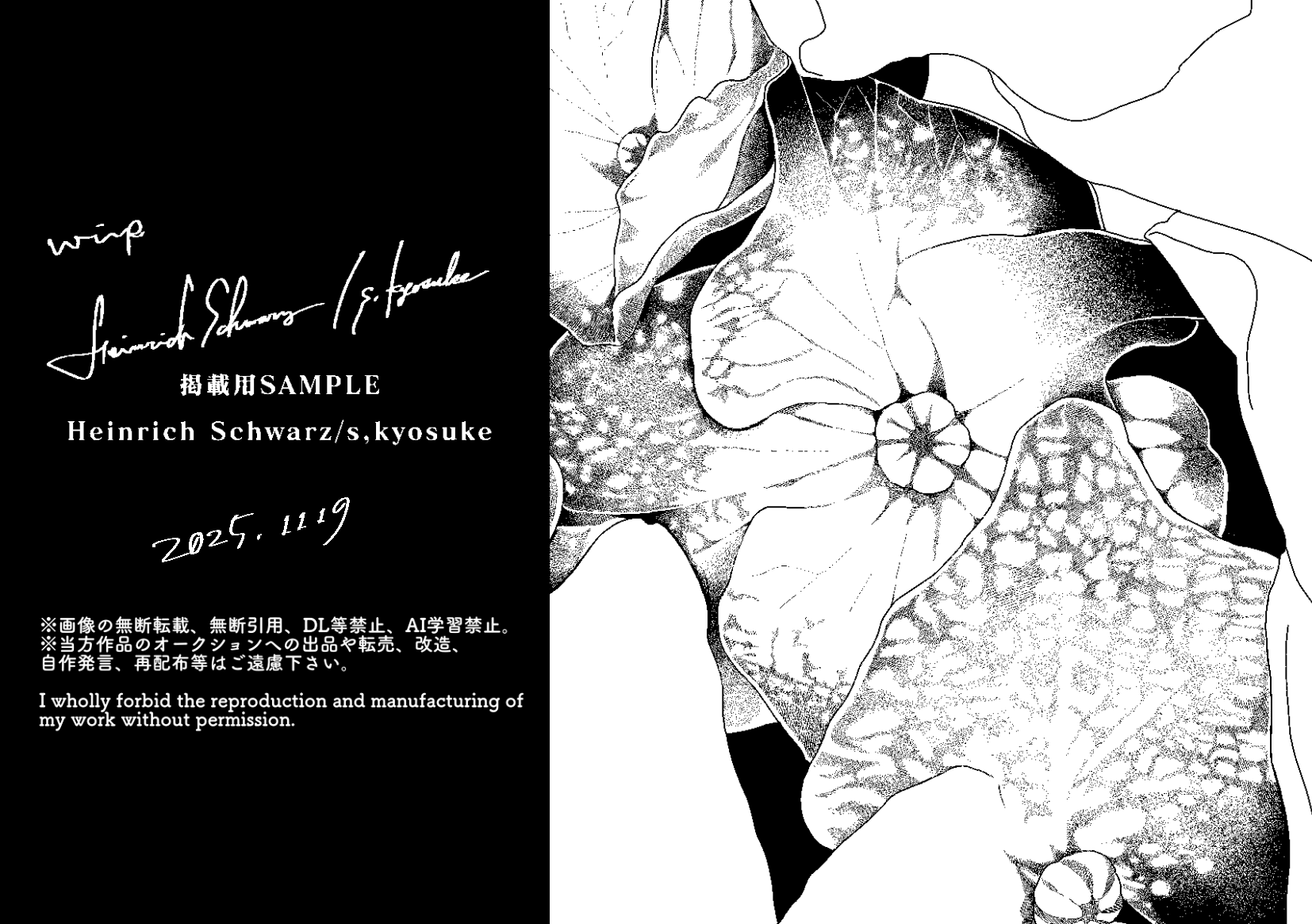 I wholly forbid the reproduction and manufacturing of my work without permission.