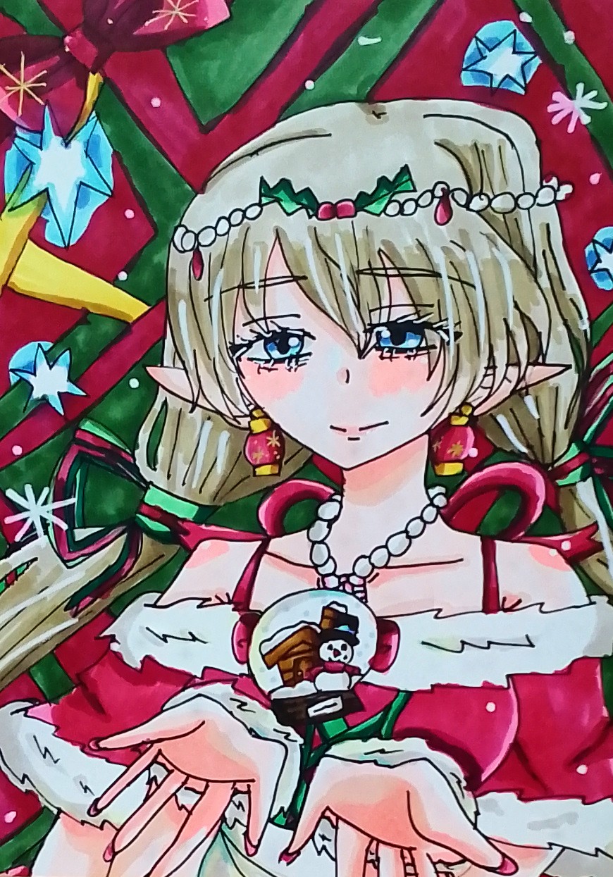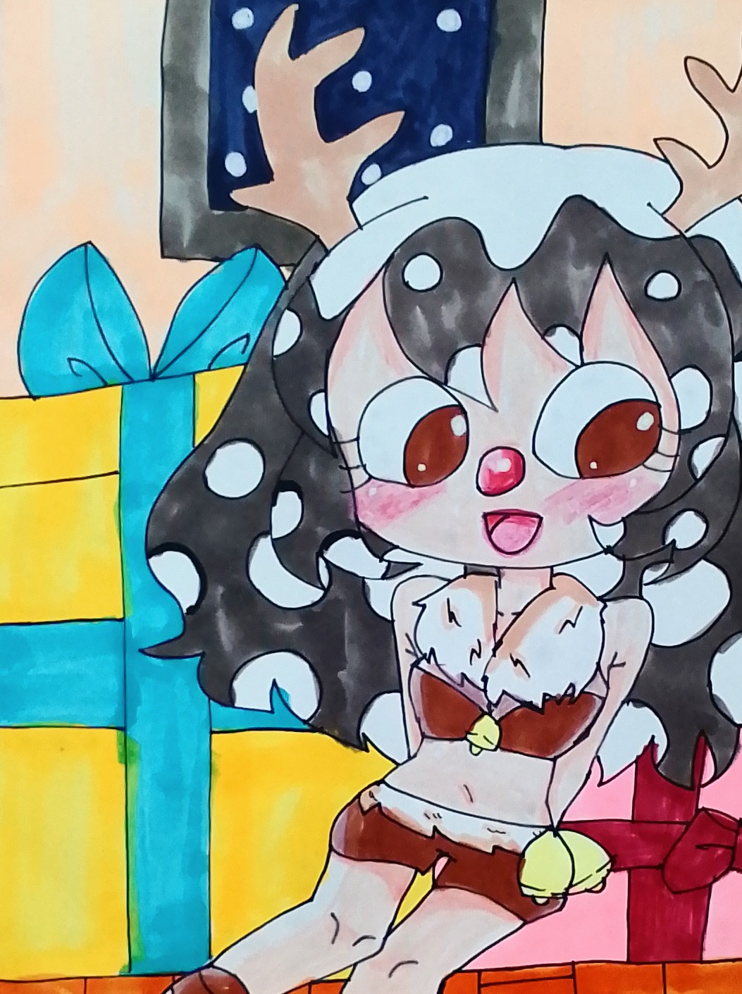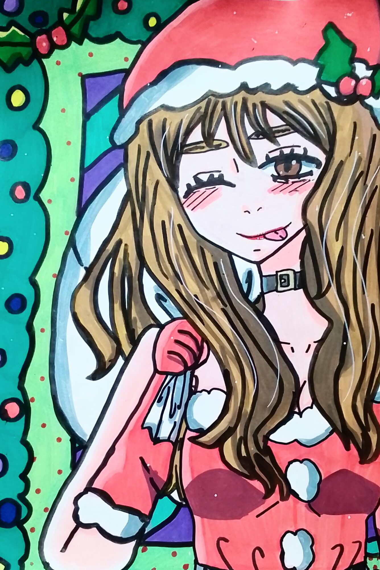 ガールサンタな女性を描いてみました。表情もお茶目で可愛い!
