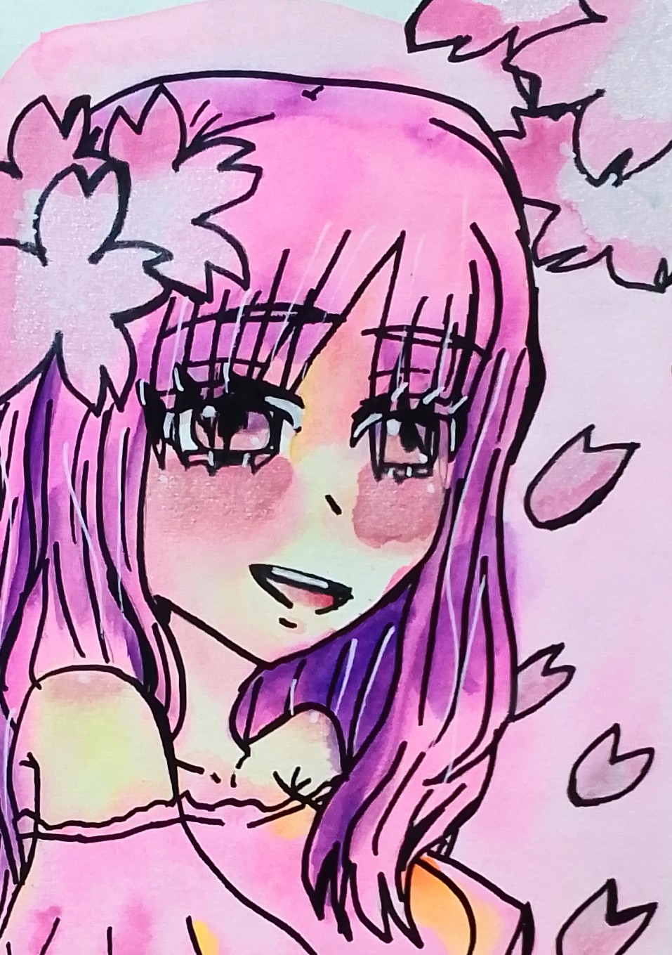 桜モチーフの女性を描いてみました。穏やかな笑顔が素敵ですね。