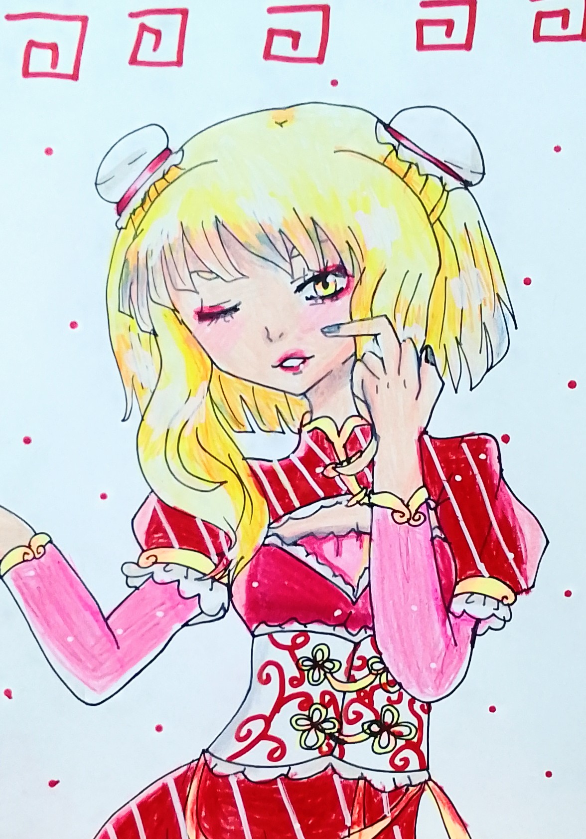 チャイナドレスっぽい可愛い服を着ている女性を描いてみました。鮮やかな赤色とコルセットがカッコいいですね!