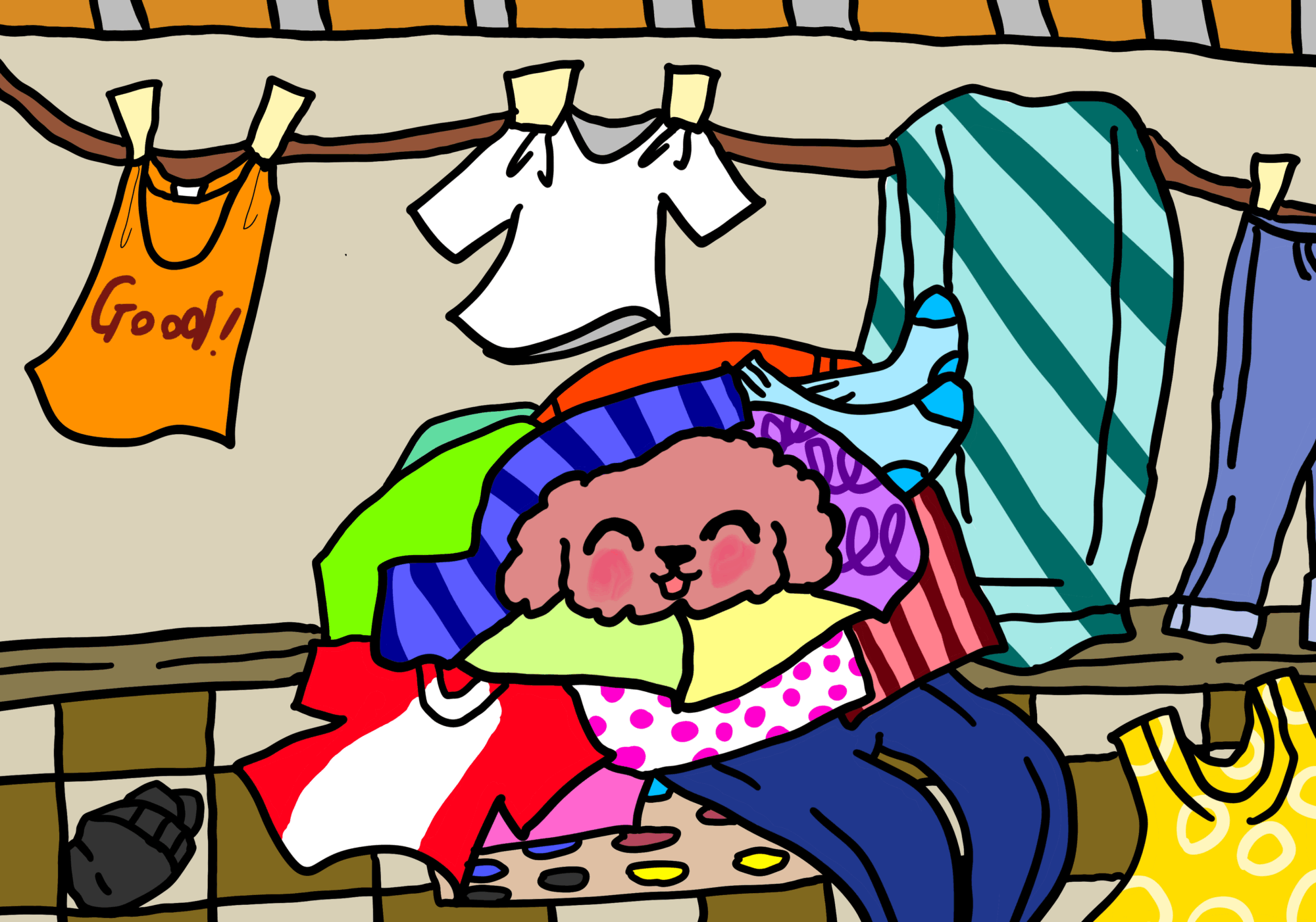 洗濯物に囲まれて埋もれて幸せそうなプードルを描いてみました。