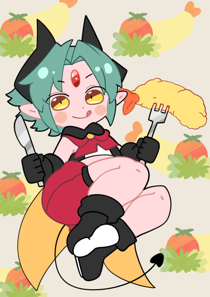 では、【巨大エビフライをどや顔で自慢する魔王子くん!】