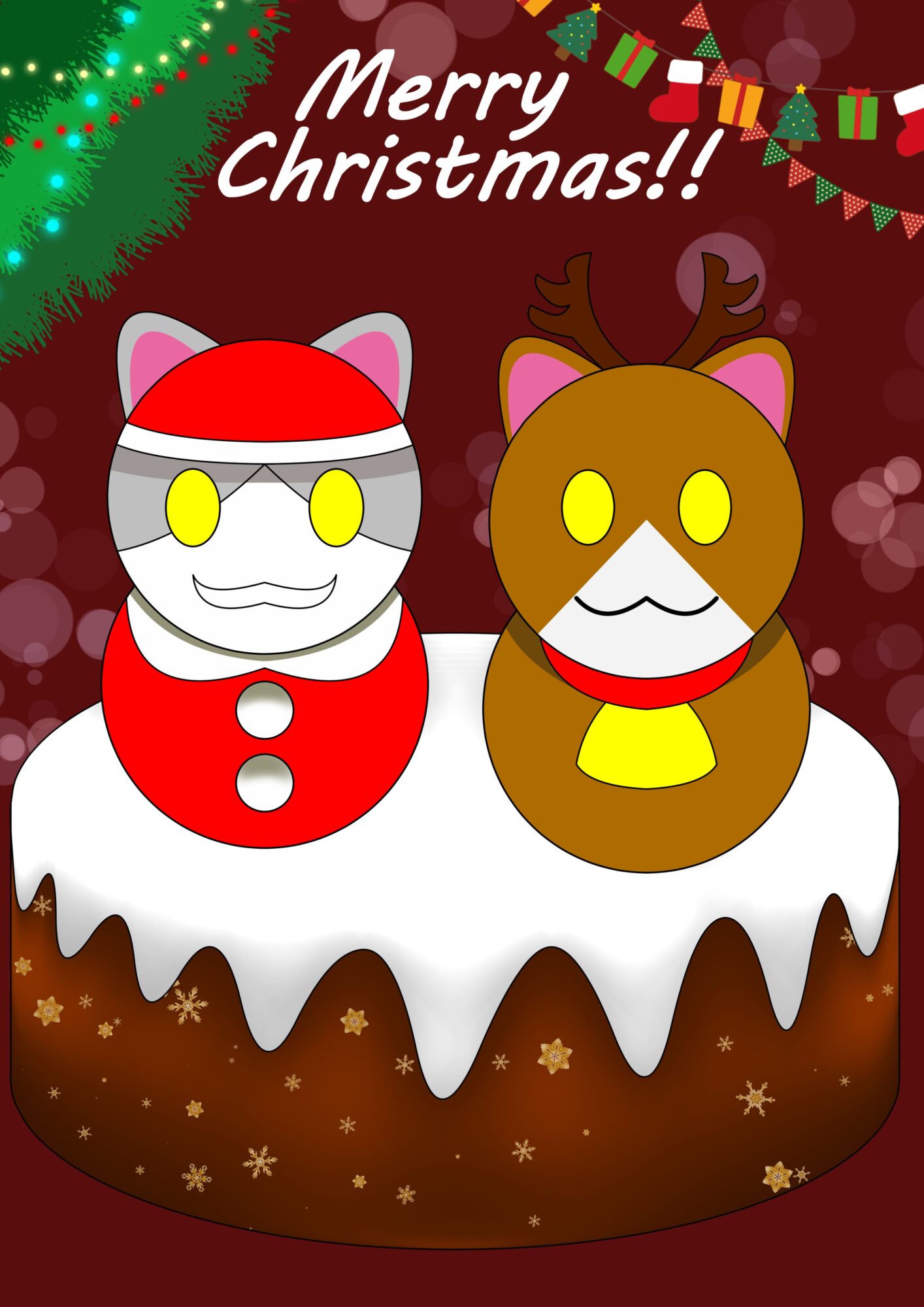 12月の季節のケーキは、猫サンタトナカイのなかよしケーキとなっております。