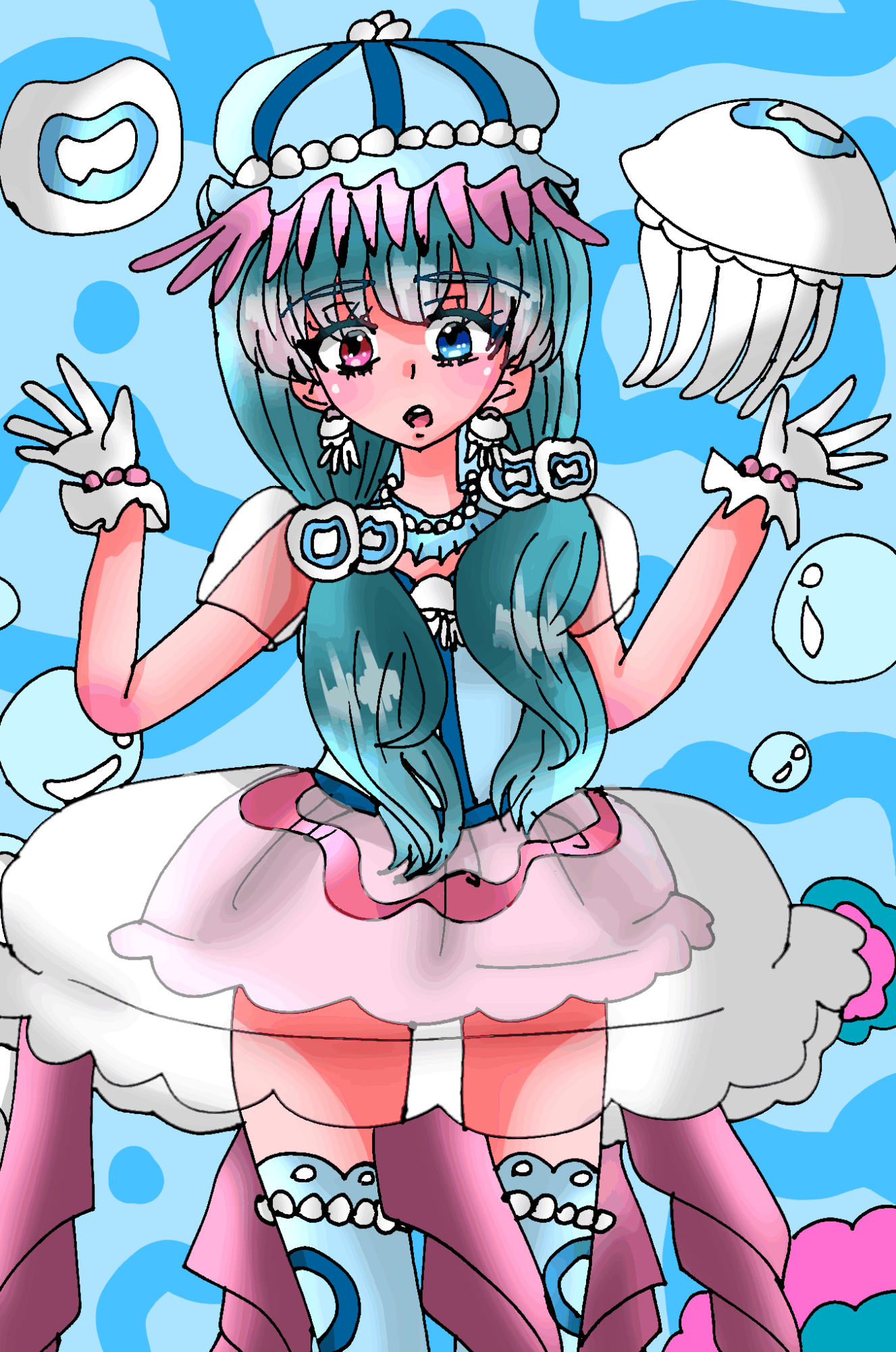 クラゲのようなひらひらとしたスカートや帽子などがポイントです。