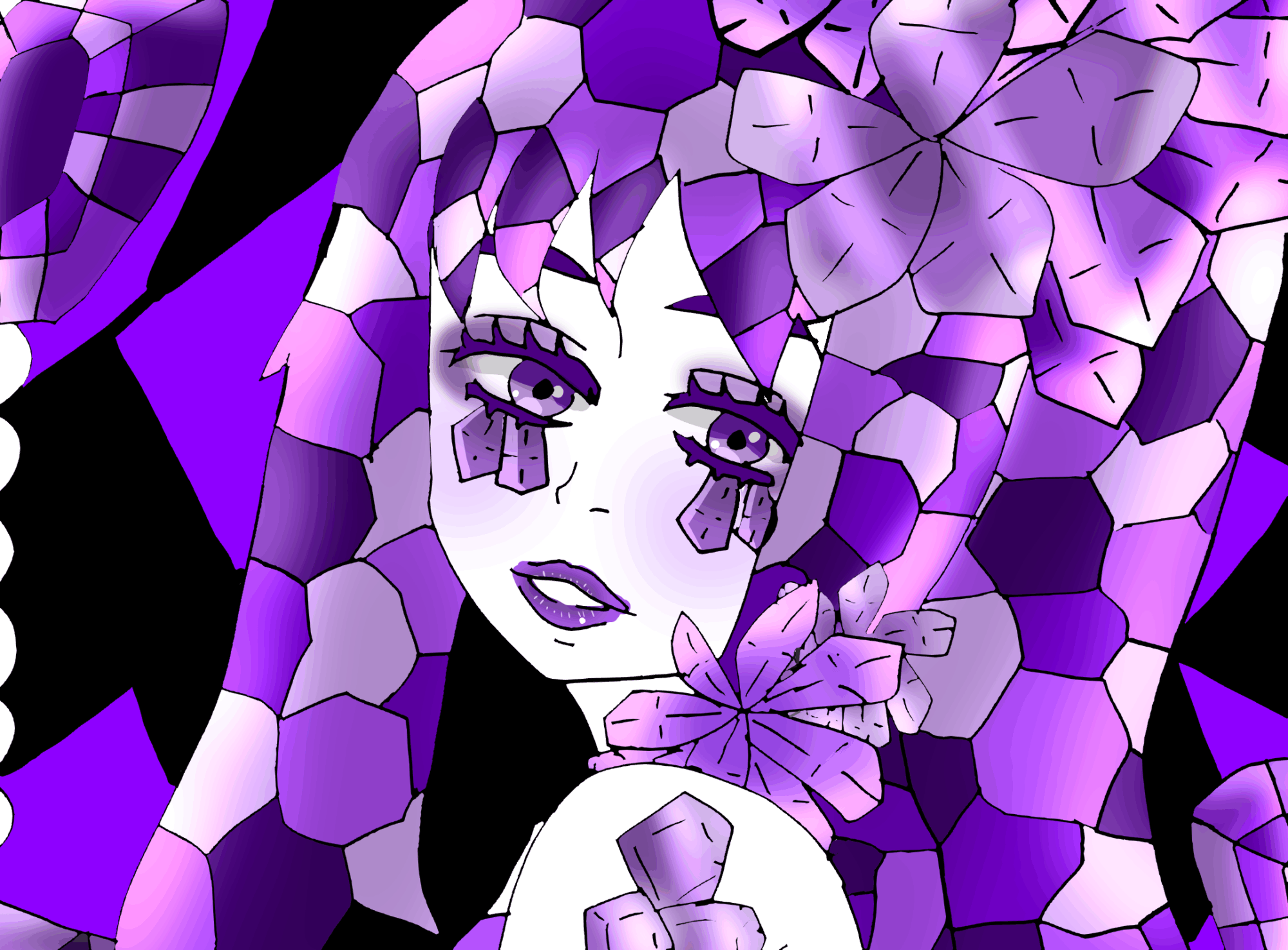 紫色の宝石やクリスタルが綺麗な女性を描いてみました。