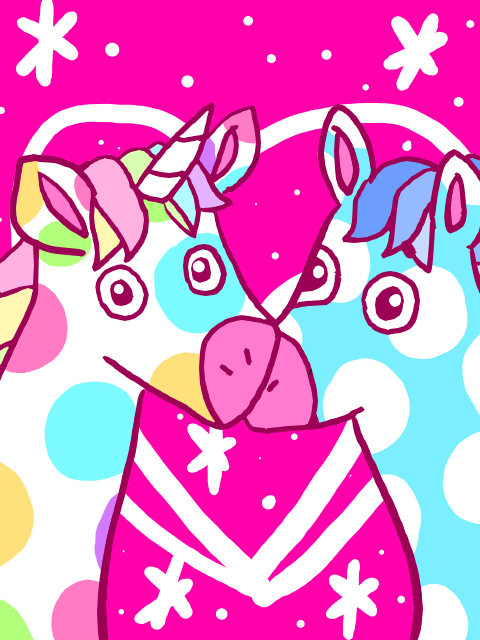 仲良しなユニコーンとペガサスをポップに描いてみました。
