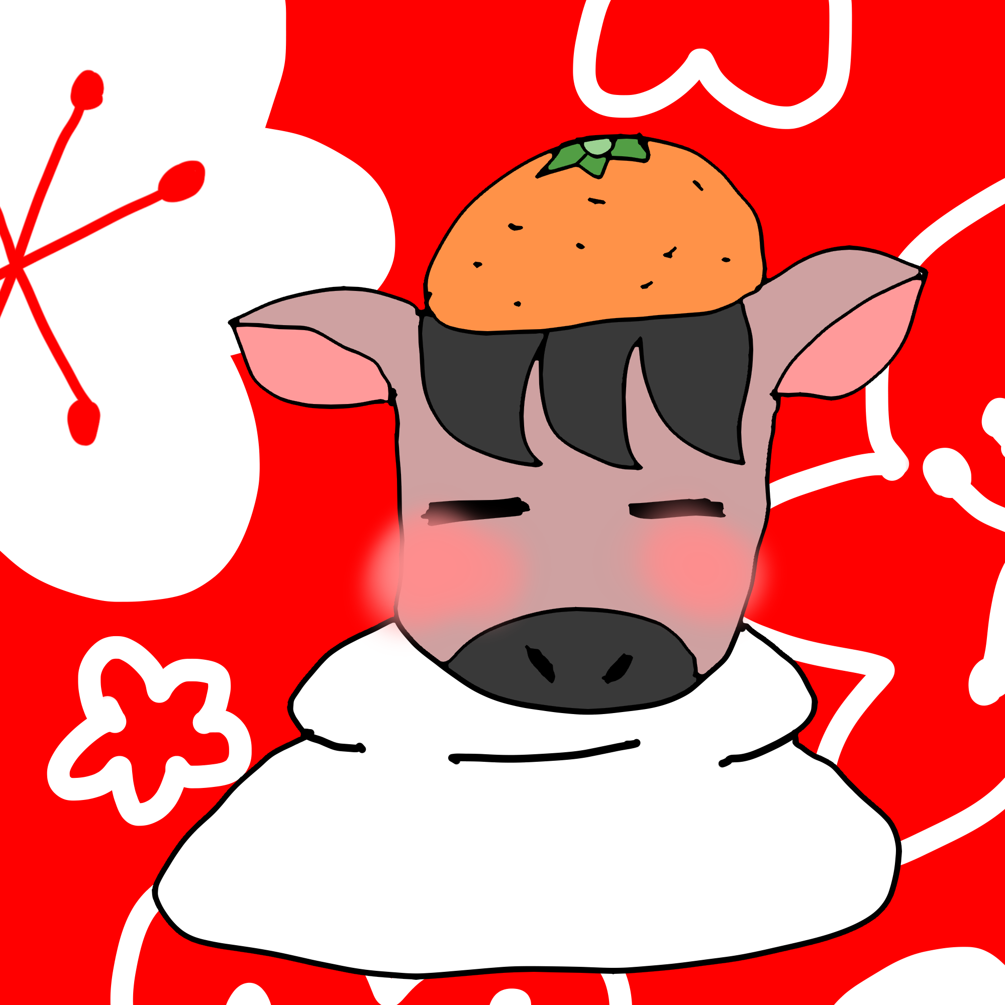 鏡餅気分な馬を描いてみました。鏡餅になりきってて可愛い!