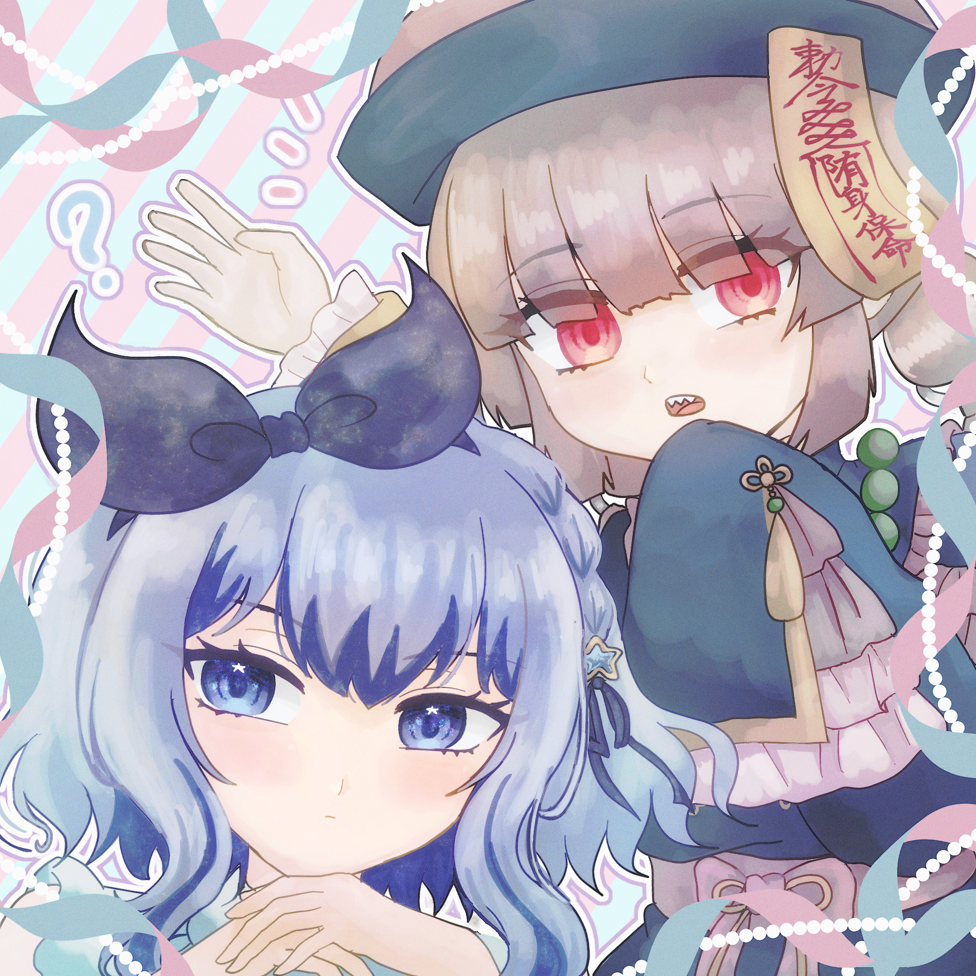 手前の銀色の子はねこぷりんの最初の記事のイラストの子の名前はスピカ。袖の長い服を着たキョンシーの女の子はキュコという名前です。