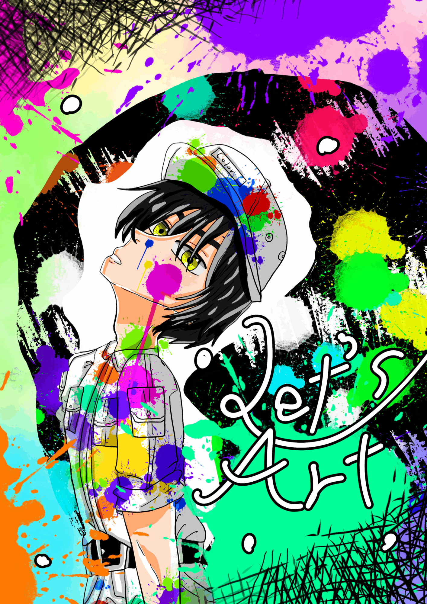 ペンキの色まみれの作業着を着ている男性を描いてみました。