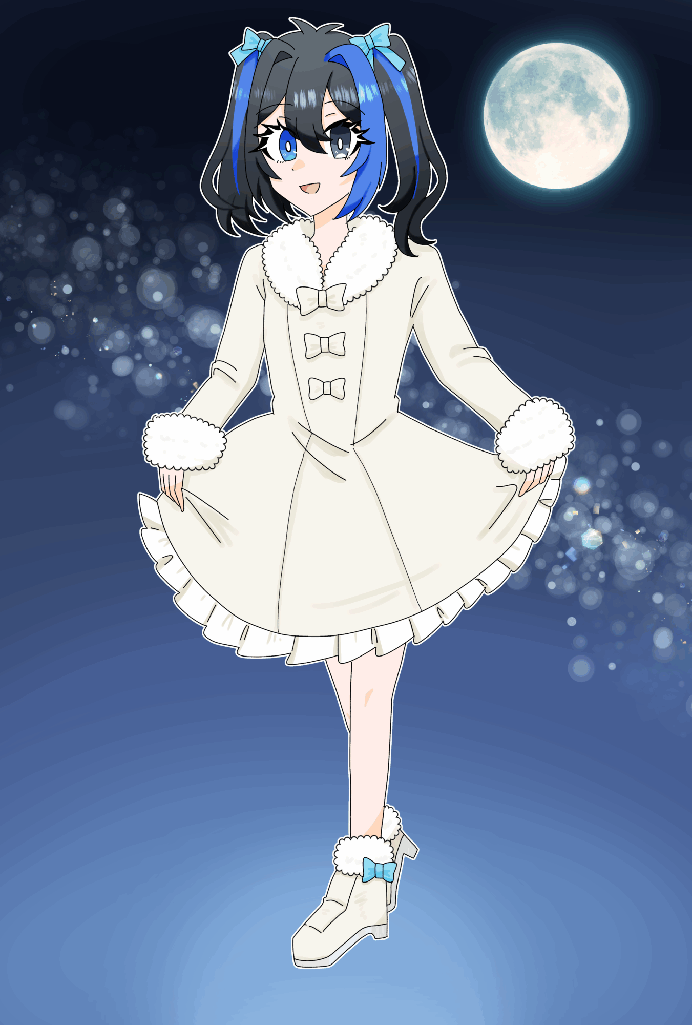 クリスマスが近づいて風が冷たくなってきましたね。寒くてもおしゃれしたい!という気持ちを込めてコートの女の子を描いてみました!今回は背景の月も冬っぽく寒色で光らせました。