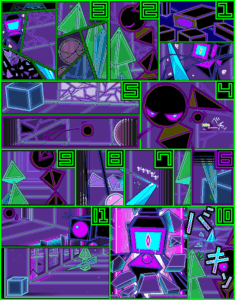 トゥイルは残骸の爆発の勢いが足りず自身の身体を持ち上がりきれておらず少しのロスを食らう、頂上の部屋に踏み込めたキナミは【四角の世界】へ飛ぶ【サイト】を見つけ今すぐにでも向かおうとする。