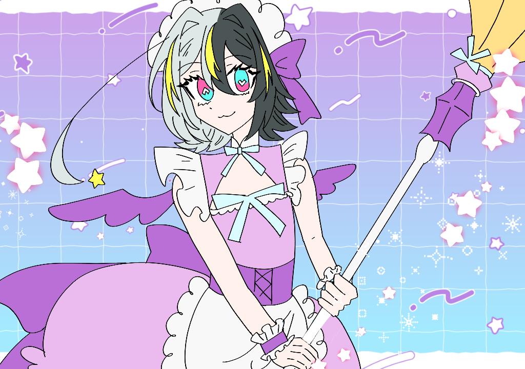 今回は私の大好きな歌手、藍月なくるさんの「キラアメイド」という楽曲からインスピレーションを受けてイラストを描いてみました!かわいいけど闇があって、とっても素敵な曲なので皆さんもよかったら聞いてみてください!MVのようなきらきらかわいい感じを目指して描きました!