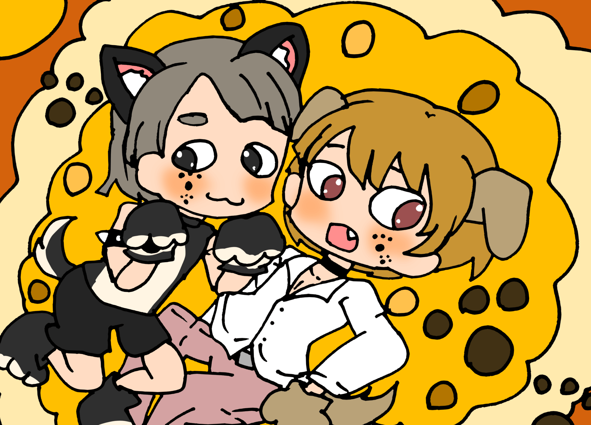 2人でじゃれ合っている犬の男の子を描いてみました。